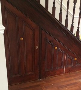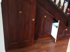 Bespoke understairs storage drawers created for customer by re-using original door panels. 3 bespoke sliding drawer units designed for easy access to coats and shoes. Share this Project
